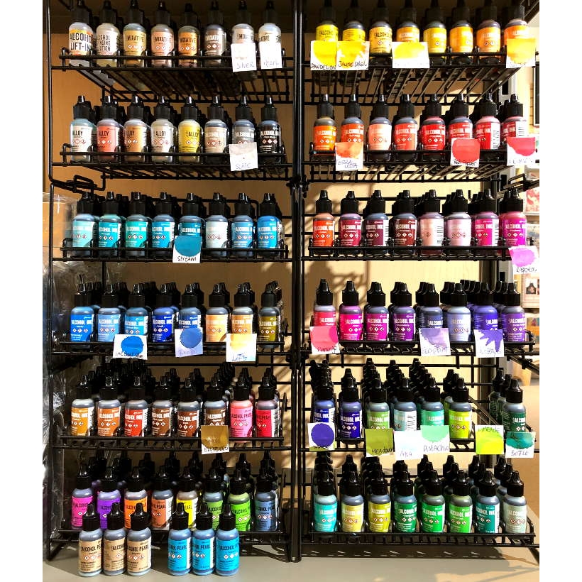 Explore color with the vibrant hues of Tim Holtz® Alcohol Ink. These acid-free, fast drying, dye inks are formulated to create colorful effects when layered together on non-porous surfaces. Ideal for use on Alcohol Ink Yupo®, as well as Alcohol Ink Cardstock, Foil Cardstock, Glossy Paper, and more. Apply Alcohol Inks to metal, glass, and glazed tiles for endless creative possibilities.