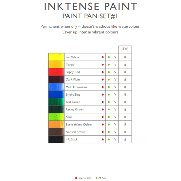 Inktense paint presents pre-mixed colous in a palette combination that artists need.