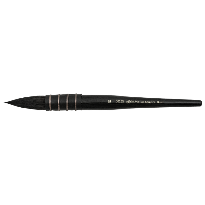 Atelier™ Squirrel Hair Quills feature a blend of natural and synthetic fibers. These brushes are very thirsty and have a full belly for absorbing a maximum amount of liquid. Colors flows beautifully onto silk or paper in sweeping strokes that add detail blending marks to your painting. Excellent for laying down a wash, wet-in-wet techniques, fine lines, broad strokes, petals and leaves. NEW smaller sizes for adding even finer detail!