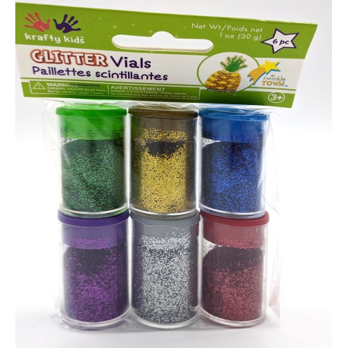Glitter Vials 6 pc green, gold, blue, purple, silver and red
