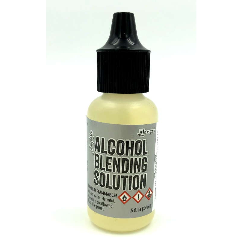 Tim Holtz® Alcohol Blending Solution is specially formulated to blend and lighten Alcohol Inks. It will also remove Alcohol Inks from slick surfaces, hands, and art tools. Available in a .5 fl oz bottle.