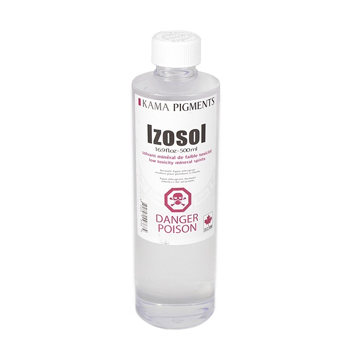 Izosol est une essence minérale isoparaffinique raffinée faite d'extraits de pétrole purifiés pouvant être utilisée comme nettoyant ou solvant d'usage général pour les peintures à l'huile commerciales ainsi que pour les peintures d'artistes. Fabriqué à partir du type le plus propre de distillat de pétrole disponible actuellement, ses raffinages successifs permettent d'éliminer pratiquement tous les composés aromatiques et/ou hydrocarbures chlorés qui sont les composants les plus toxiques de ce type de solvant. Spécifiquement, la teneur en aromatiques d'Izosol est inférieure à 0.01% ce pourcentage peut atteindre 25% pour d'autres solvants de type "sans odeurs". Voilà ce qui fait d'Izosol une alternative de solvant plus saine. Comme tout solvant, ce produit doit être utilisé dans un endroit adéquatement ventilé.