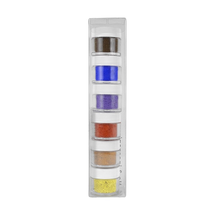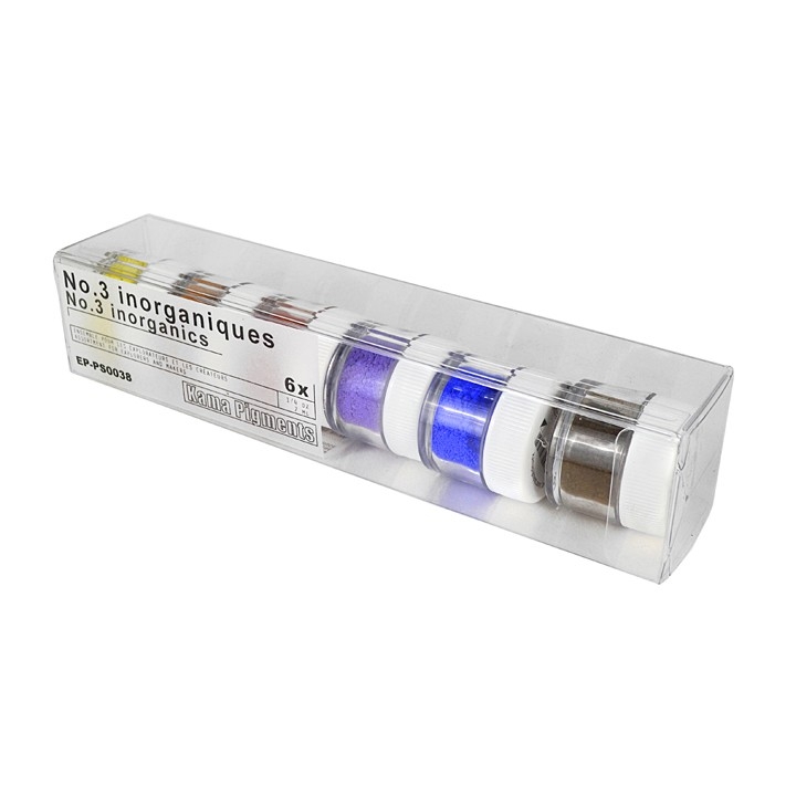 This set includes 6 distinct tones of INORGANIC pigments in 7ml format.