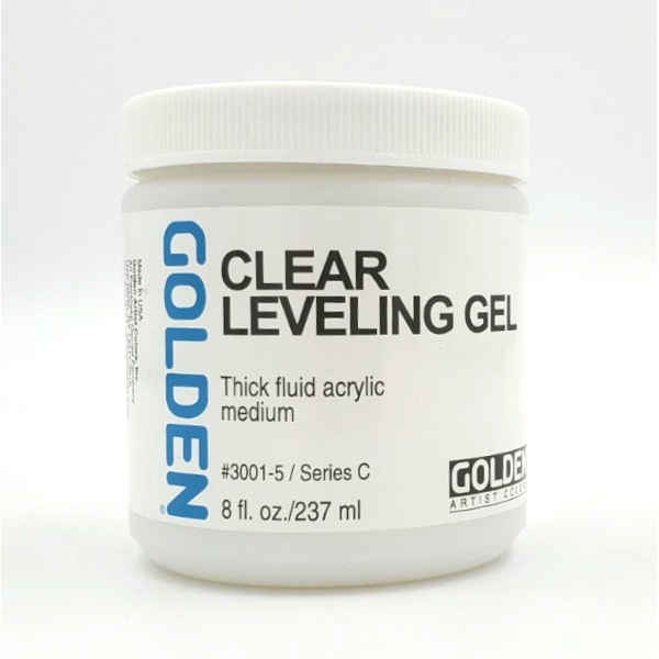 Designed to produce an even film with excellent clarity. This gel has similar qualities to the Clear Tar Gel: it has a resinous consistency and offers excellent leveling, yet its viscosity is closer to that of the Soft Gel. This product dries to a flexible, high gloss film, which can increase transparency and sheen while imparting a leveling quality to other GOLDEN Acrylic products. Blends with GOLDEN Acrylic colors to produce glazes without brush-strokes.