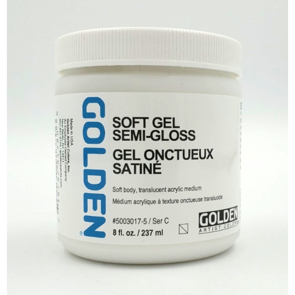 Plus minces que les couleurs acryliques GOLDEN Heavy Body, les Soft Gels sont modérément versables et ne retiennent que de légers pics.