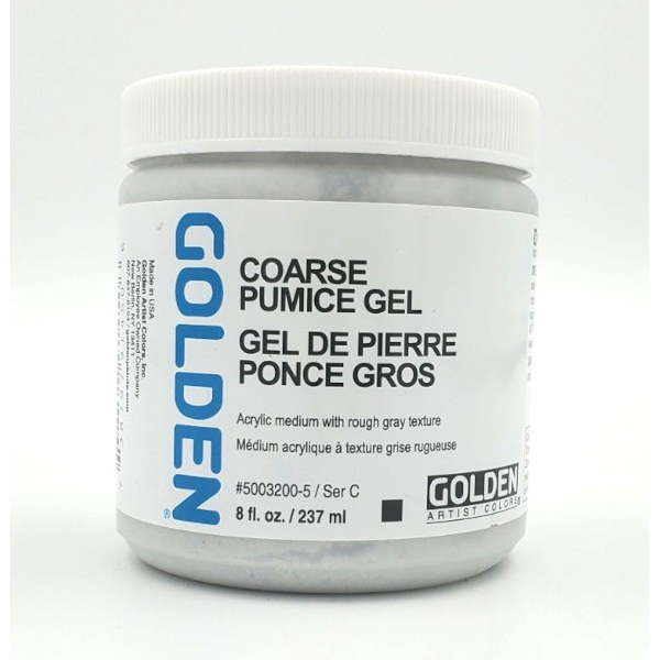 Used to create granular textured surfaces. Dries to a hard film. To increase flexibility, mix in other GOLDEN Gels or Mediums. Blends with GOLDEN Acrylic colors. Useful as a ground for pastels.