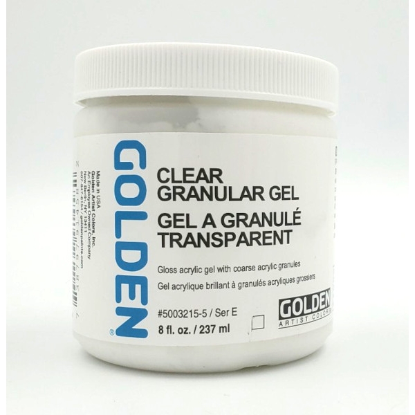 Clear Granular Gel is made with granular acrylic solids and has excellent clarity and durability with a coarse texture that dries translucent. Clear Granular Gel can extend paint and add texture without altering color.