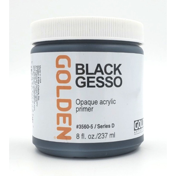 Black Gesso is ready-to-use formulation for painting on most surfaces. It is flexible and can be applied in thin layers to conform to a variey to textures without cracking. For oil painting, we recommended that at least three layers of gesso. Gesso can be mixed with acrylic colors to produce a range of colored grounds.