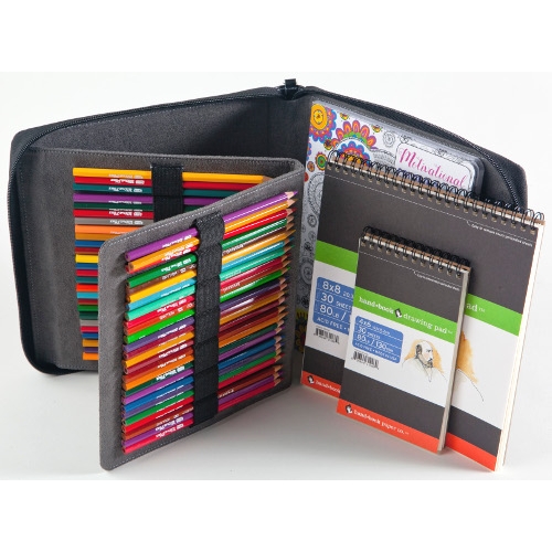 Les valises de voyage Speedball sont la solution parfaite pour colorier et dessiner en voyage. Dotés d'une construction en toile finie avec du cuir noir véritable, les étuis de voyage Speedball ont la capacité de ranger un carnet de croquis, un journal ou un livre de coloriage en plus des crayons, stylos, pastels ou crayons de couleur. Peut contenir jusqu'à 60 crayons ou stylo. L'étui de voyage est vendu vide.
