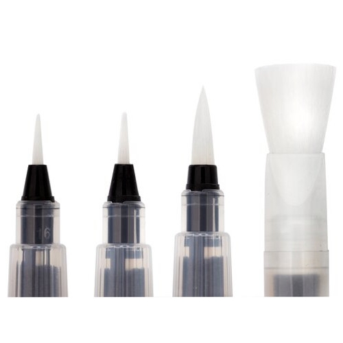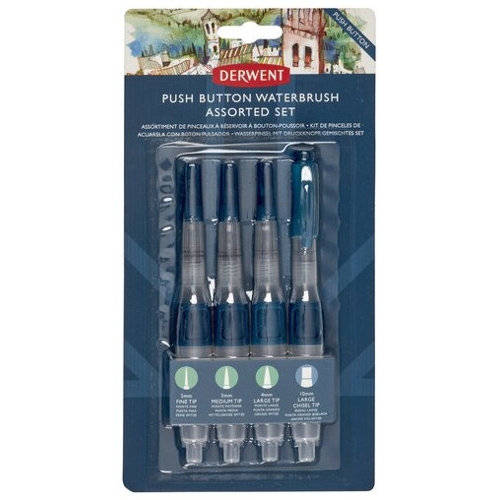 - Pack includes 4 waterbrushes in assorted sizes for detailed and broad strokes: 2 mm fine tip, 3mm medium tip, 4mm large tip and 10mm large chisel tip.