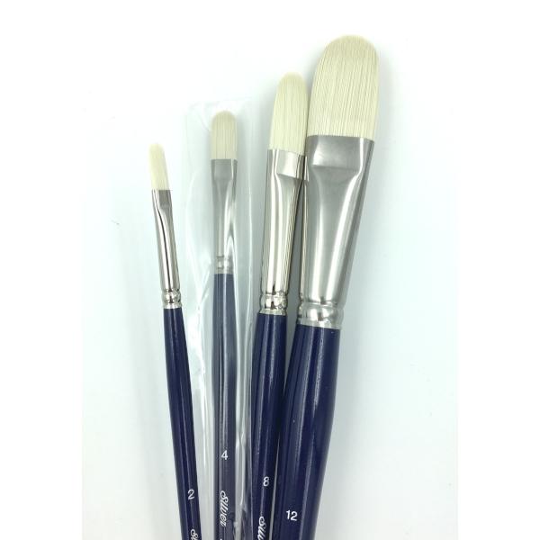 Bristlon is a superior stiff white synthetic brush that has been specially processed so it can be used with harsh solvents without compromising the texture or the fibers. These brushes offer excellent color control and strong resiliency on rough surfaces as a result of their interlocked construction and finely chiseled tips. It doesn?t matter if you are working with oils, acrylics, or watercolors, they will maintain their form and provide an even application of color.