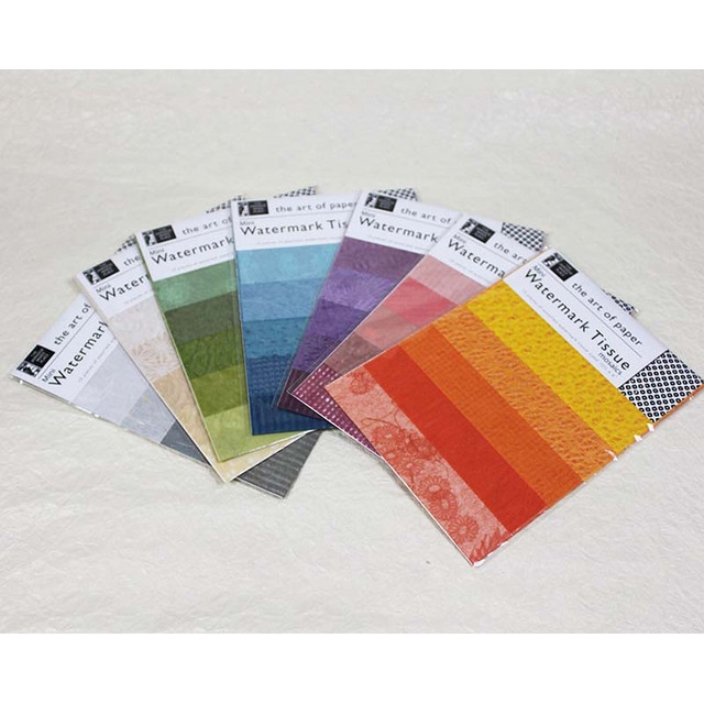 Lacy and delicate patterns, organic and fibrous inclusions are the hallmark of these papers. 10 pieces of colour co-ordinated assorted patterns of tissue.