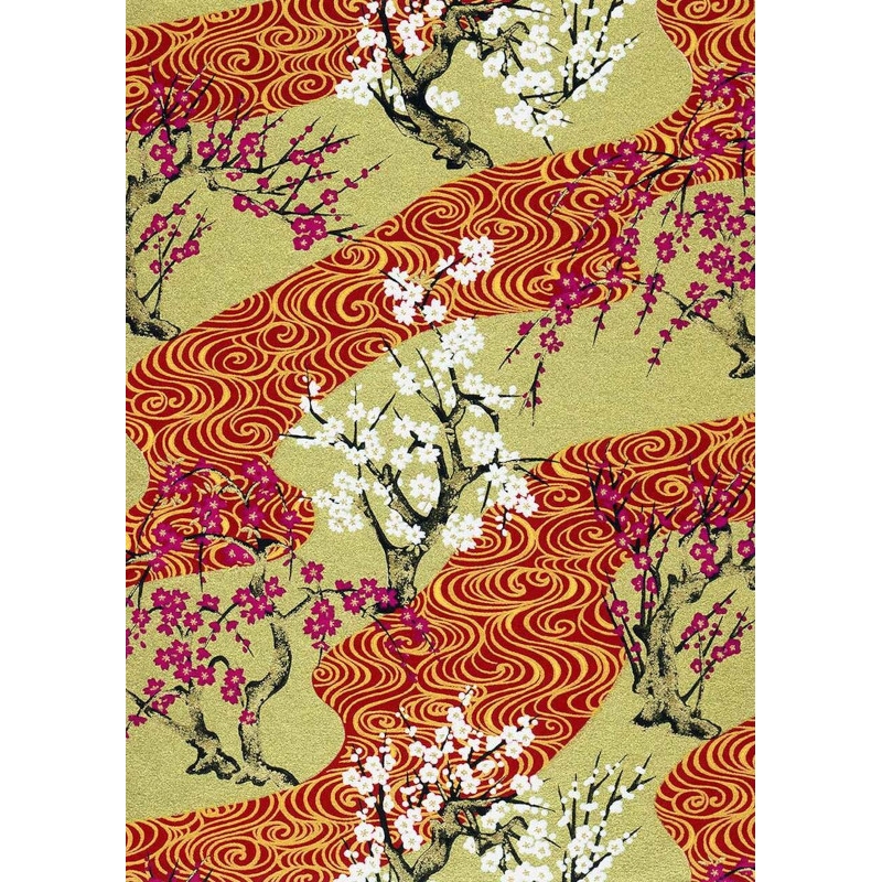 Luscious, vibrantly-coloured Chiyogami papers are hand-printed using the silk-screen technique. In this laborious process each colour is applied using a separate screen. Sometimes as many as 12 colours, including gold or other metallics, may be used to create a single pattern. Sold in half-sheet of 19.5x26" (50x66cm).