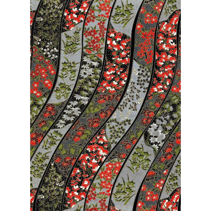 Chiyogami 644C 19 1/2"x26"- Leaves and red flower strips