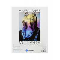 Mineral paper is made from 80% calcium carbonate which provides a unique surface for water based or dry media. A great alternative to wood-based paper. Tear-resistant, foldable, and non-wrinkling. Will not bleed through, even when soaked. Mineral paper is a great surface for almost any media wet or dry, and can be ink jet printed (results will vary depending on the printer). Its bright white vellum like surface allows for crisp lines, saturated colors and just the right amount of absorbency for a wide variety of creative techniques. Acid free. Bright white. Not recommended for oil-based paints or oil pastels. 20 sheets per pad. 100lb/150 gsm.