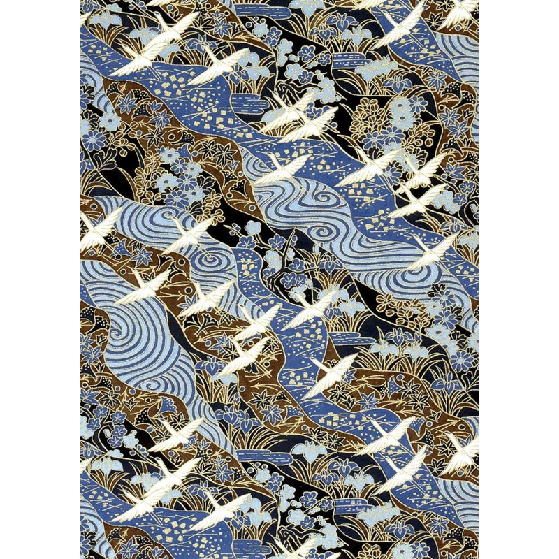 Chiyogami 24C 19 1/2"x26"- Blue pattern waves with white birds