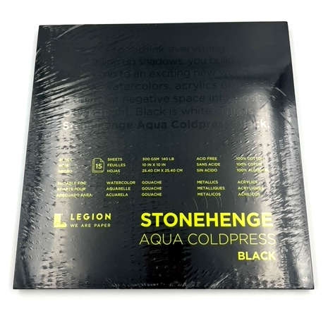 Tablette papier aquarelle noir 100% coton 140lbs 10"X10" Stonehenge (15 feuilles)
