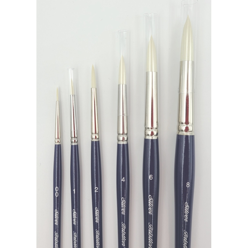 Bristlon is a superior stiff white synthetic brush that has been specially processed so it can be used with harsh solvents without compromising the texture or the fibers. These brushes offer excellent color control and strong resiliency on rough surfaces as a result of their interlocked construction and finely chiseled tips. It doesn't matter if you are working with oils, acrylics, or watercolors, they will maintain their form and provide an even application of color.