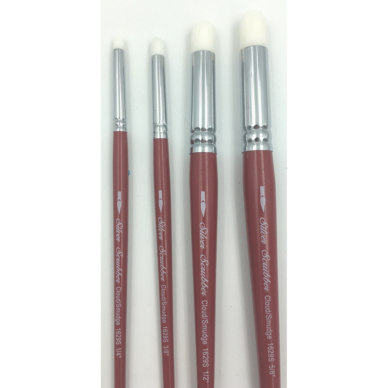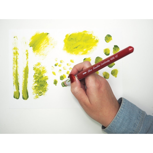 Silver Scrubbers are good for any type of paint and on any surface including canvas, boards, wood, thick paper, fabric, furniture, walls and more. These super stiff brushes can lift watercolor with ease, blend acrylic and oil, soften pastel or charcoal and firmly push paint into fabrics.