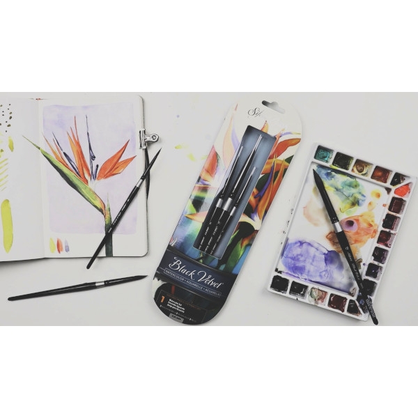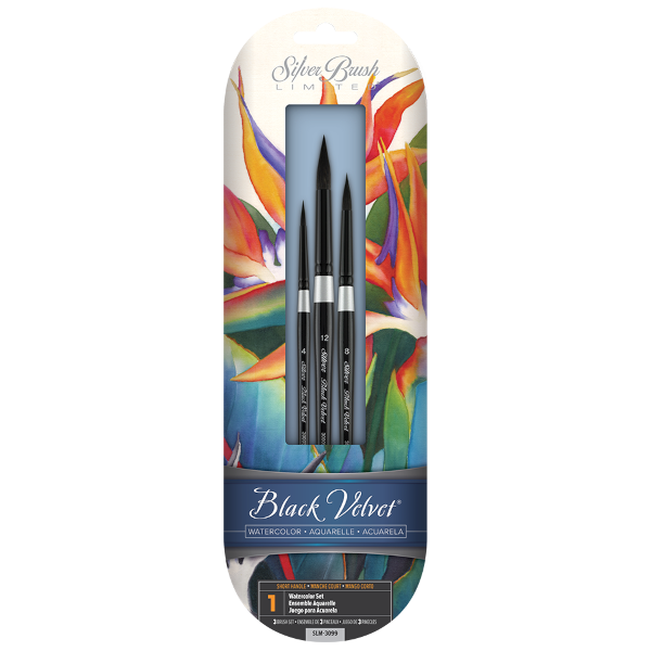 These distinctive black lacquer handled brushes with a signature silver band are a water-based artist?s dream! The Black Velvet® series is made with a blend of natural squirrel hair and black synthetics that allow the brush to hold a huge amount of color and release it with perfect control for watercolors, gouache, fluid acrylics, inks and dyes. The bristles are simultaneously soft enough to allow multiple-layer glazing without disturbing previous colors, yet firm enough to lift color with a gentle scrub.