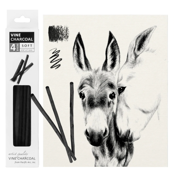 Made from the controlled burning of vines that are selected by hand, vine charcoal has a distinct soft and velvety quality that yields exceptionally deep black hues, making it the choice of professional and student artists, draftsmen and architects.