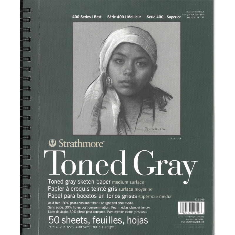 This sketch paper is ideal for light and dark media. 100% recycled, contains 30% post-consumer fiber, acid free.