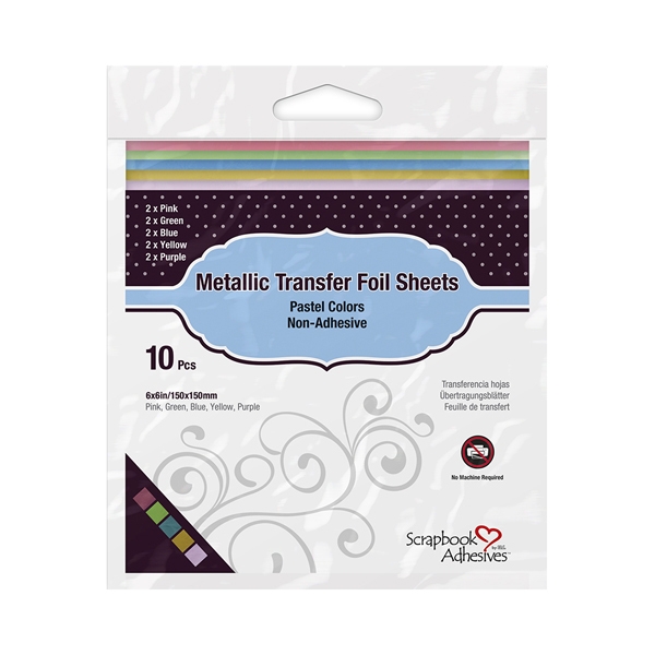 Metallic Transfer Foils Pastel adds colorful shine to cards, scrapbooks, DIY, and mixed media projects. This package contains 10 sheets of pastel colors sized 6 x 6".