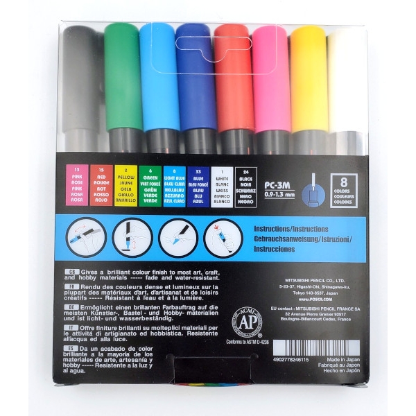 Non-toxic, water-based POSCA paint markers can be used on almost any surface, and are loved by professionals, creative hobbyists and amateurs alike. The alcohol and solvent-free opaque paint covers well, is blendable, dries quickly and can be overlaid when dry. ACMI certified and made in Japan. For all types of art, craft, graffiti, decor and more.