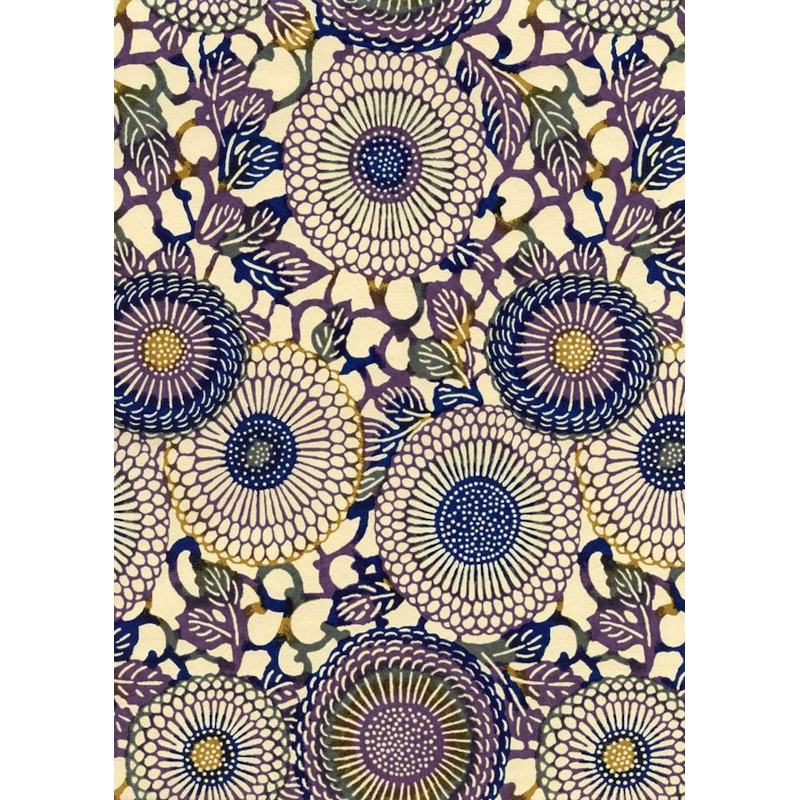 Luscious, vibrantly-coloured Chiyogami papers are hand-printed using the silk-screen technique. In this laborious process each colour is applied using a separate screen. Sometimes as many as 12 colours, including gold or other metallics, may be used to create a single pattern. Sold in half-sheet of 19.5x26" (50x66cm).