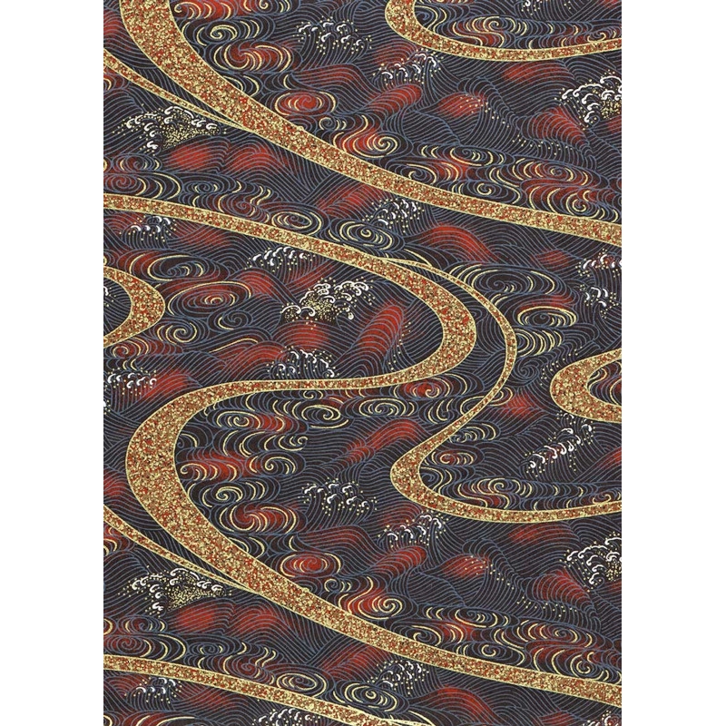 Chiyogami 292C 19 1/2"x26"- Red and black waves with Golden swirls