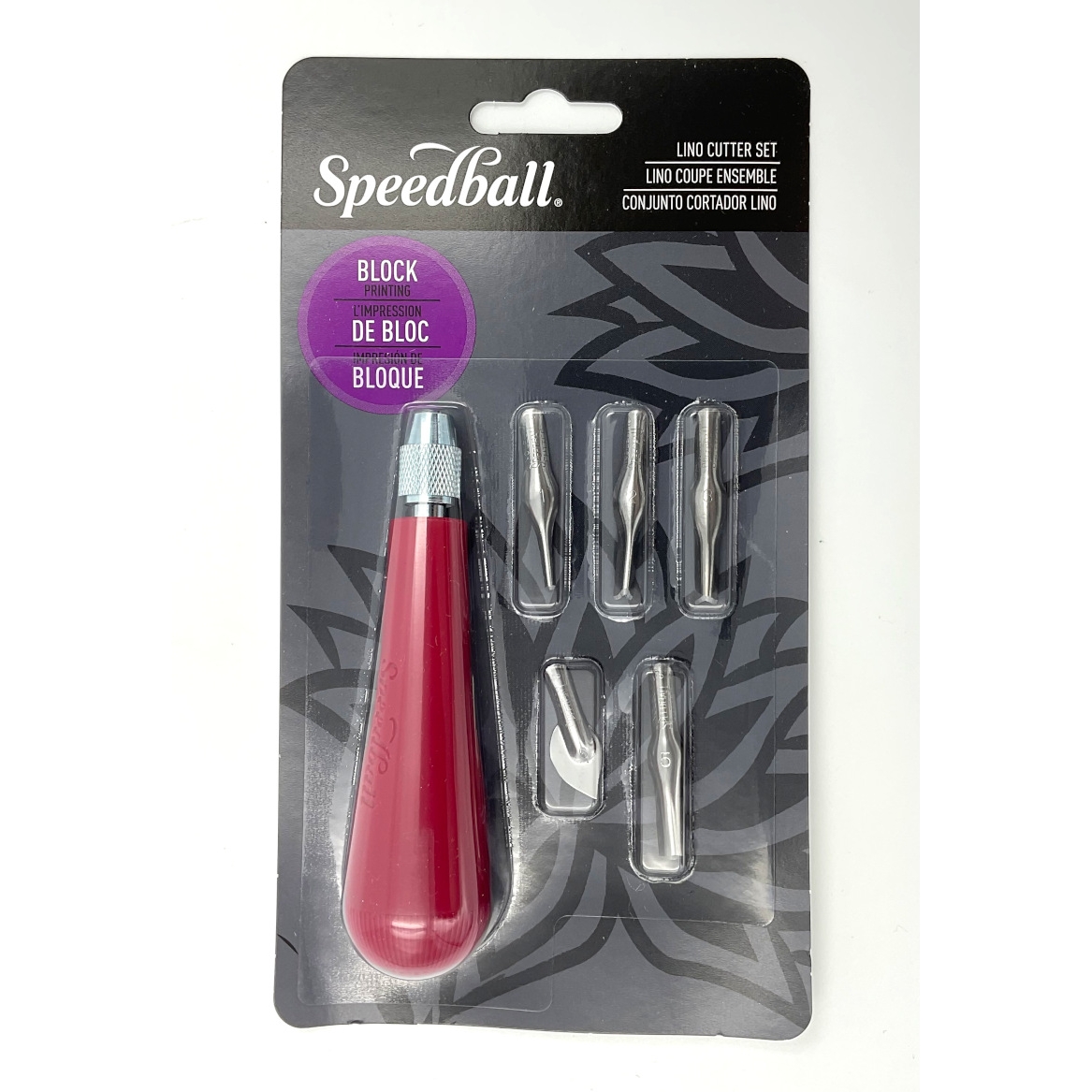Featuring a removable twist off end cap for easy & convenient storage of linoleum cutters, these durable hard plastic, comfort grip handles are designed to a premium standard. Hand-adjustable metal chuck makes changing out linoleum cutters a breeze ! Speedball linoleum cutters are crafted from high quality steel and are hand-ground and honed. They are precisely sharpened to provide optimal cutting edges. They are ideal for carving both traditional linoleum as well as soft block substrates.