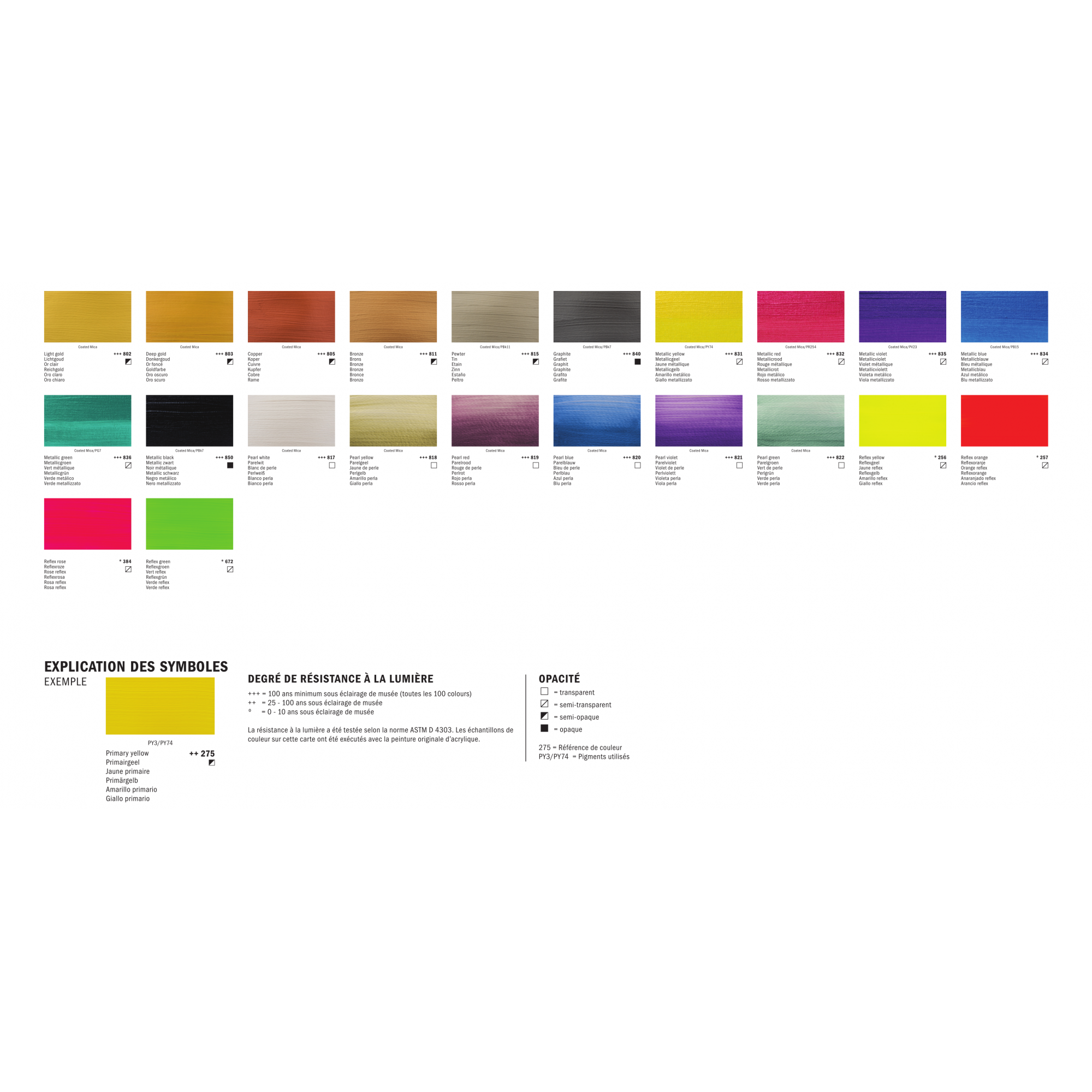 Extensive range of 90 colors with a great variety in opacity, including 17 Specialty Colors (metallic, pearl and reflex finishes)