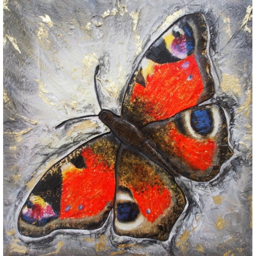 Acrylique sur bas-relief en plâtre 20"x20". Par Carole Majeau.