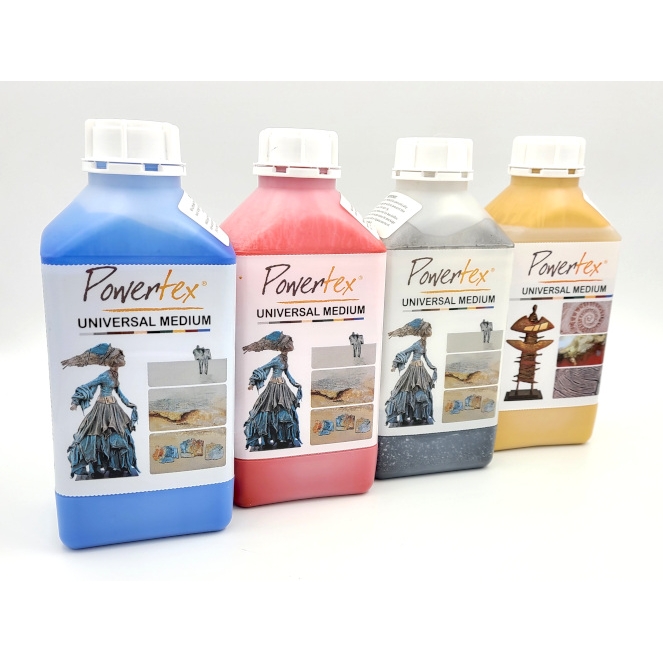 Powertex Transparent is a white liquid that dries to a mat finish showing the original patterns and colors from the hardened fabrics. You can create any Powertex colour by adding Powercolor or Colortricx pigments to Powertex Transparent. Dissolve the pigment in a little warm water and stir in the Powertex. Once dry your artwork can be decorated with oil paints, acrylics, latex or Powercolor mixed with Easy Varnish. This combination makes the paint instantly waterproof.