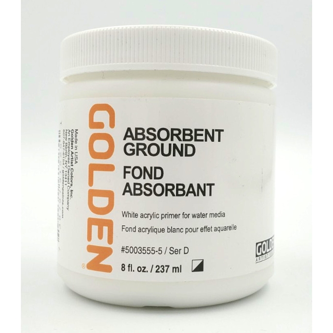 Absorbent Ground is a fluid acrylic medium that dries to a porous, paper-like surface.