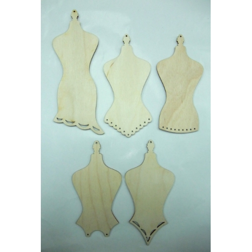 Ensemble de 5 bustier différents en bois. Conception par Josée Cloutier.