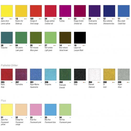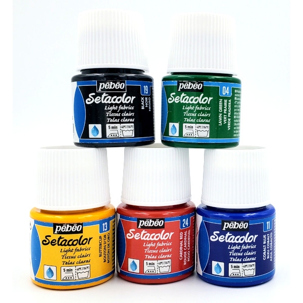 Setacolor Light Fabric colours go on most pre-washed fabrics: cotton, wool, cotton wool, knits, jerseys, velvet, jacquard, polyester, blended fibres, nonwovens and even leather. They are used pure or diluted with water to obtain watercolour effects. Setacolor Light Fabrics? rich texture is suitable for many fabric decoration techniques: brush, pipette, acetate, bubble wrap, stamping, silk screening, stencil ... Diluted with water, they can be used for sun painting.
