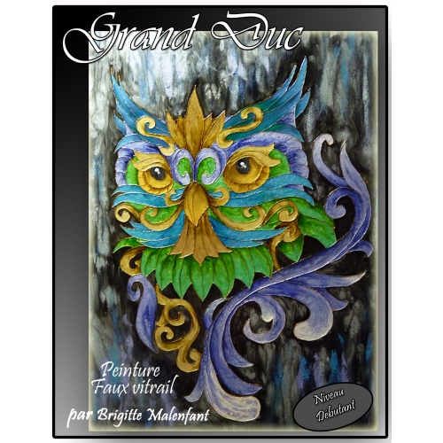 Patron de peinture faux vitrail sur panneau de bois 18"x24". Niveau débutant. Par Brigitte Malenfant.