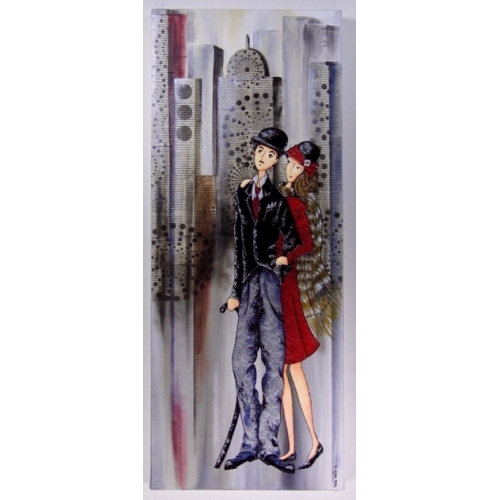 Techniques mixtes avec peinture acrylique, collage et faux vitrail sur toile galerie 12"x30". Par Josée Cloutier.